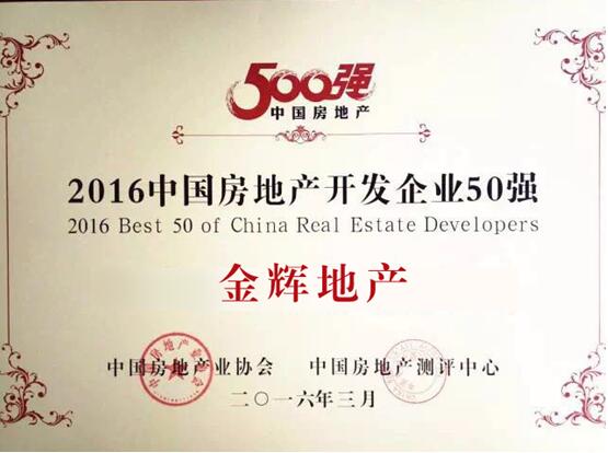 3月22日,在中國房地產(chǎn)業(yè)協(xié)會和中國房地產(chǎn)測評中心聯(lián)合舉辦的“2016中國房地產(chǎn)500強測評成果發(fā)布會暨500強峰會”上,金輝憑借優(yōu)異的銷售去化能力和良好的綜合實力,正式躍升中國房地產(chǎn)42強!