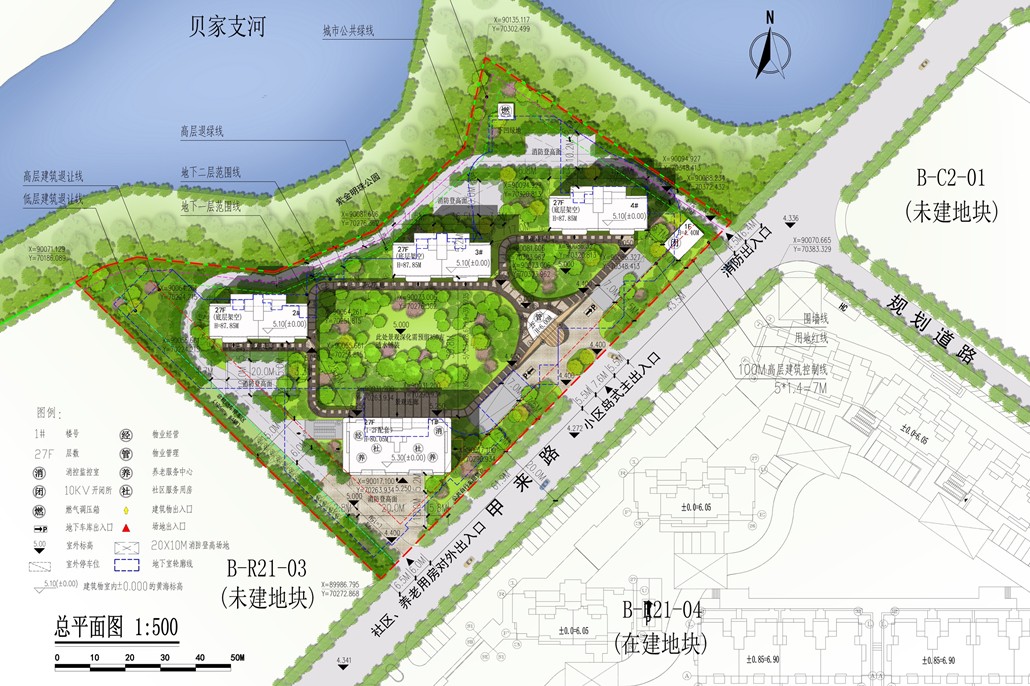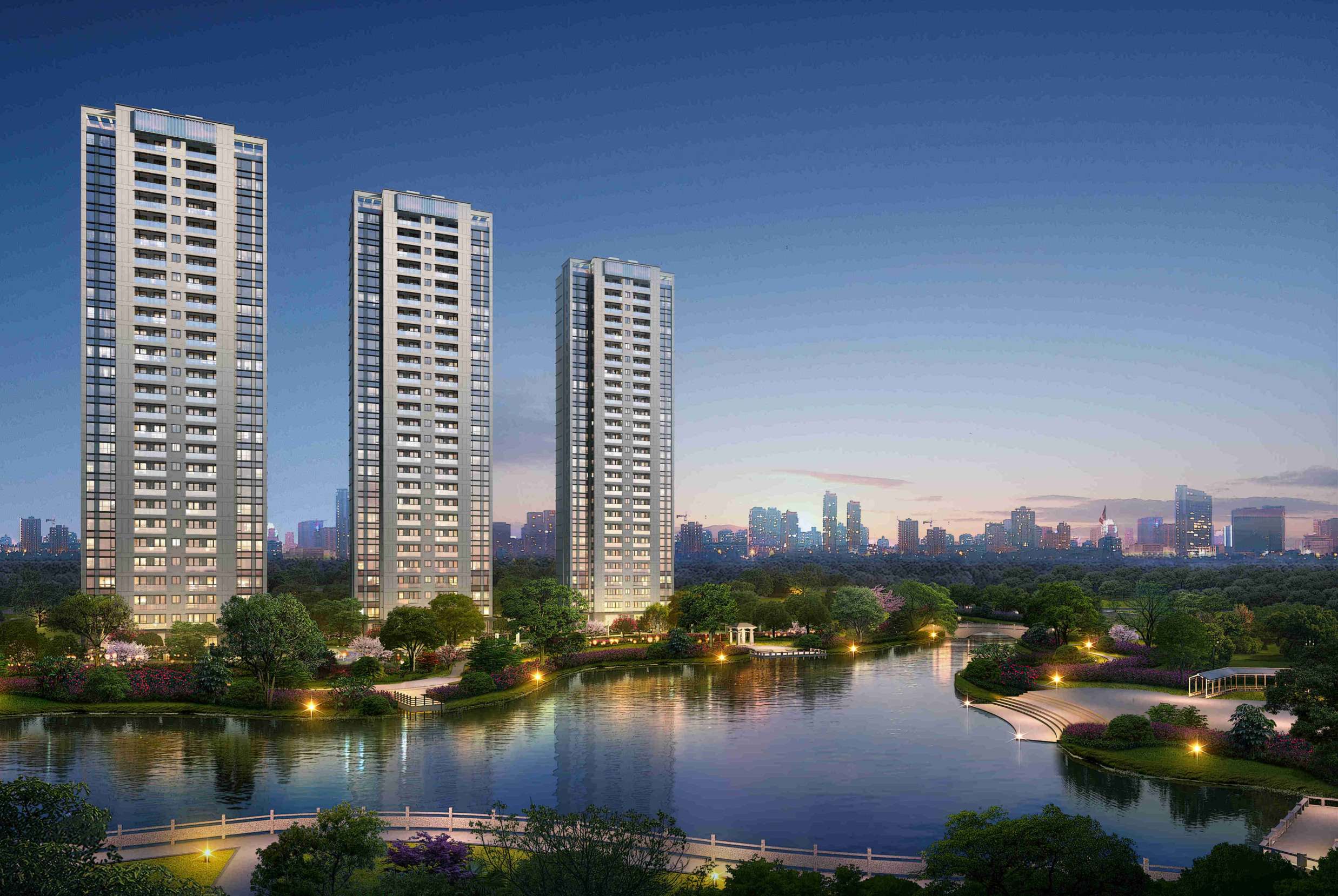 整個項目占地1.13萬方,總建面積約4.99萬方,地上約3.38萬方,地下約1.51萬方。由4幢27層高層圍合而成,其實1號樓是自持,2、3、4號樓采用一字排開的布局,使得公園的景觀資源能滲透進項目內(nèi),最大化利用了公園的景觀資源,從來名貴,必居于湖畔。并且,古人云,臨湖而居,盡得財氣。